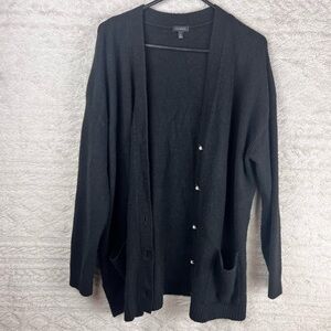 Talbots Wool Alpaca Black Sweater Cardigan Women's Pearl Rhinestone Button XL