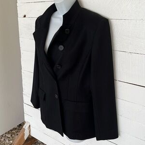 This wool blazer is in perfect condition! Fully lined and ready for the chilly office! It features two real front pocket and a fun breast hankie pocket. Pit to pit measures 19”. It is black. Non smoker home