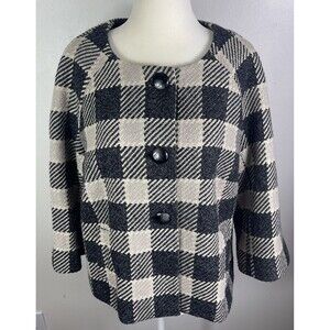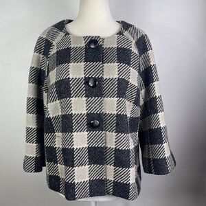 Talbots 14 P Wool Blend Gingham Plaid Cape Blazer Italian Fabric Career Office