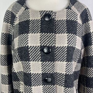 Talbots Wool Blend Blazer Italian Fabric 14P Gingham Plaid Cropped Careerwear