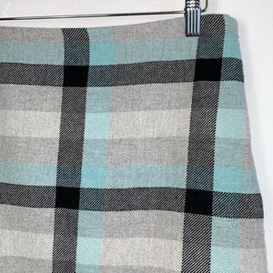 Talbots Wool Blend Blue Grey Checkered Plaid A-Line Skirt Sz 6