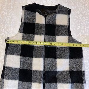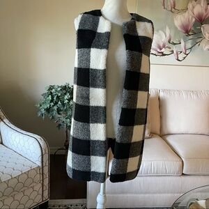 Talbots wool blend Buffalo Plaid long vest in black, white and gray. Open front with single hook and eye closure. Faux fur. Approximate measurements laying flat: the chest is 20” and the length is 32”. Great condition. Size M