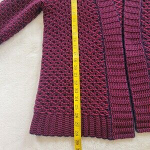 Talbots Women's Size Large Wool Blend Open Front Cardigan Deep Red Blue Long Sleeve chunky Knit in good pre-owned condition! Please see photos for approximate measurements.