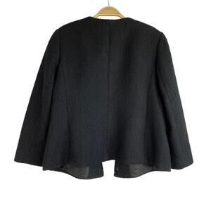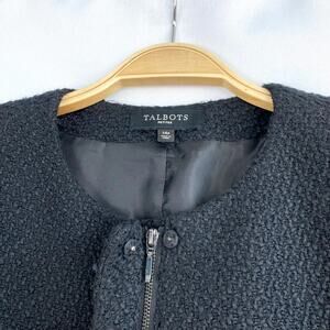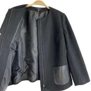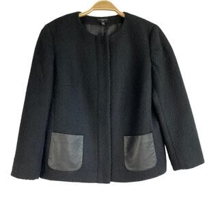 Talbots Wool Blend Crop Lady Jacket Women 14P Black Edgy Faux Leather Pockets