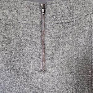 Elevate your wardrobe with this elegant gray skirt. Perfect for any occasion, it offers a timeless style and comfortable fit. Pockets in the front. Fully lined. Zipper Detail in back. Excellent condition. Versatile! Office, workplace, career, professional, interview, boss, dinner, date night, school girl, preppy, academia, teacher, church, brunch, classy, dressy, stealth wealth, staple, capsule, basic, neutral, fall, autumn, classic. Fabric doesn't stretch.