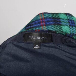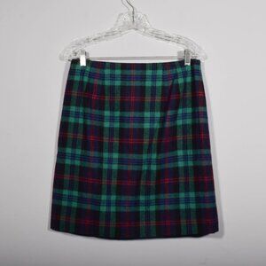 Talbots Wool Blend Green Cheerful Tartan Plaid Faux Wrap Kilt A Line Skirt Sz 6