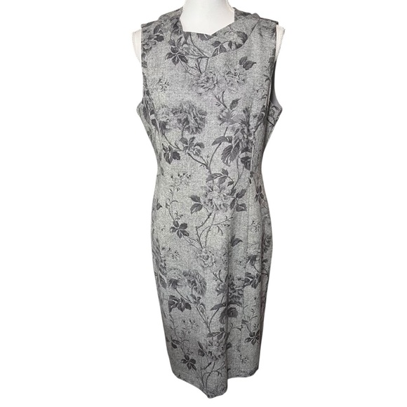 Talbots Wool Blend Grey Floral Roses Cowl Neck Sheath Dress Size 12 Classic NWT