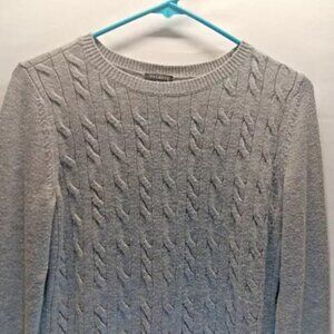 Talbots Wool Blend Light Gray Cable Knit Ribbed Pullover Sweater Size Medium EUC