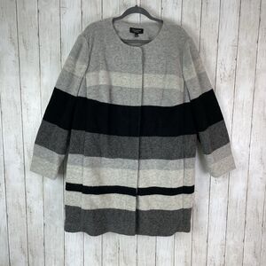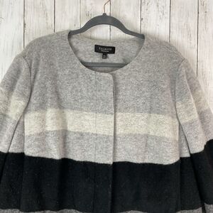 Talbots Wool Blend Long Coat Sweater Jacket Sz 3XP Black White Gray Striped
