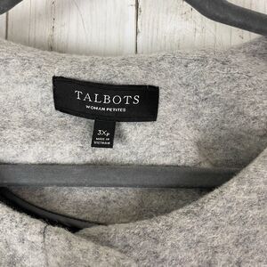Size 3X Petite. In good preowned condition. Is a medium weight wool blend long sweat sweater jacket Shacket.