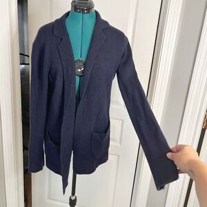 Talbots Wool Blend Open Front Knit Pocket Cozy Cardigan Sweater Blazer