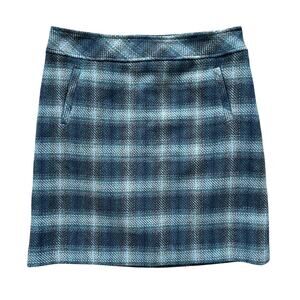 Talbots Wool Blend Pencil Skirt Womens Sz 8 Blue Plaid short Professional Preppy