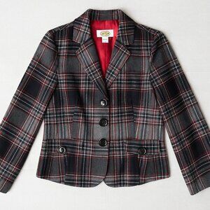 Talbots Wool Blend Plaid Blazer Red Gray Black Size 14 Lined Classic Winter Jack