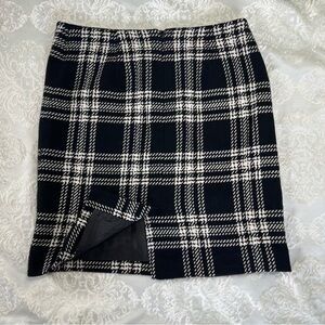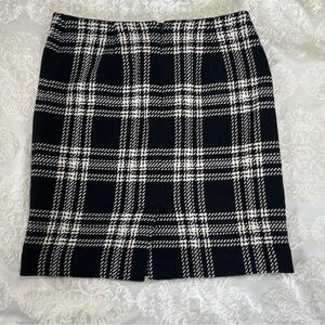Talbots Wool Blend Plaid & Houndstooth Skirt Black & White Size 6