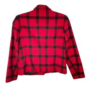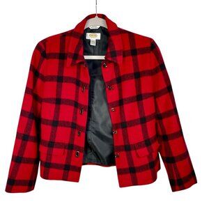 Talbots Wool Blend Red & Black Plaid Blazer Silver Toggle Buttons Womens 2P Prep