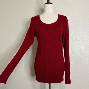 Talbots Wool Blend Red Fisherman Cable Knit Long Sleeves Sweater, Sz Medium