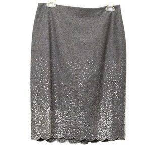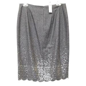 Talbots Wool Blend Sequined Pencil Skirt w/ Scallop Hem, Size 8, Gray/Silver NWT