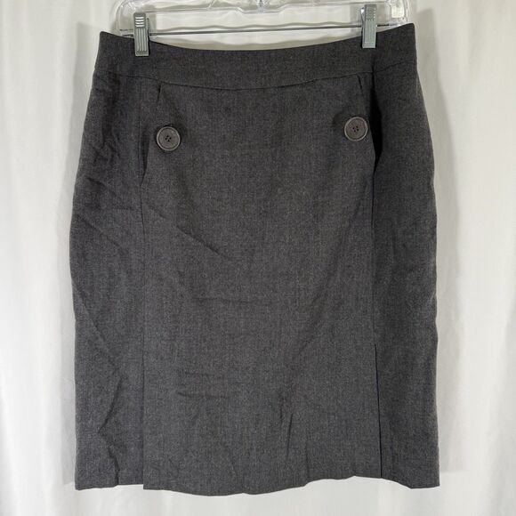 Talbots Wool Blend Skirt Women's 10 Grey Pockets Lined Zip Back Knee Length