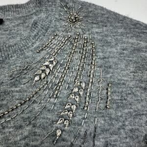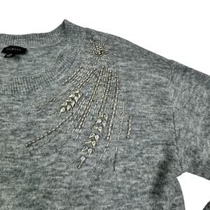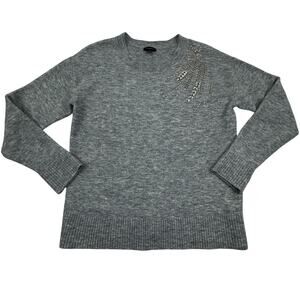 Talbots Wool Blend Soft Comfy Classy Silver Rhinestone Beaded Sweater Women's XS
