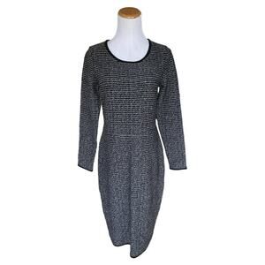 Talbots Wool Blend Sweater Dress S Black White Knit Long Sleeve Knee Length NWT