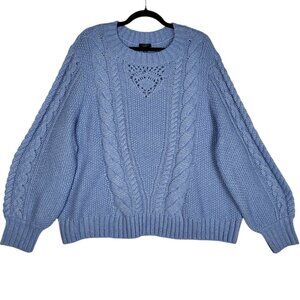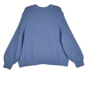 Talbots Wool Blend Sweater Women's 3X Petite Blue Cable Knit Balloon Sleeves New