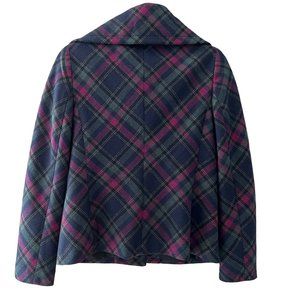 Other: Collared; long sleeves; front button closure; pockets on either side; classic fit; straight hem; lined