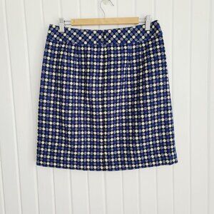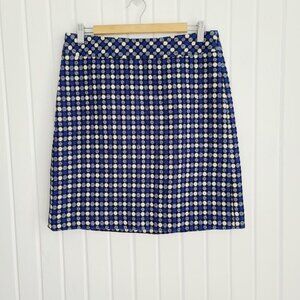Talbots Wool Blend Tweed Blue White Polka Dots Pencil Career Skirt Size 6