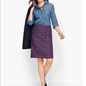 Talbots Wool Faux Wrap Plaid Scalloped Pencil Skirt size 10