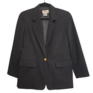 Talbots Wool Luxe Knit One-Button Black Vintage Oversized Blazer