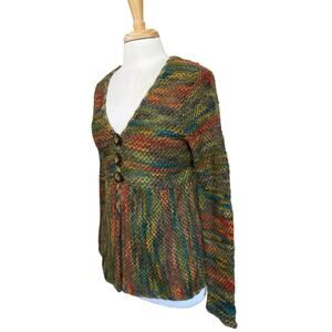 Talbots Wool Mohair Blend Multicolor Chunky Knit Cardigan Sweater Size L