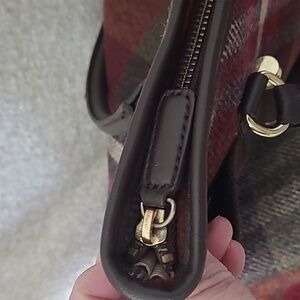 Talbots wool plaid tote 14x14x3 11" drop handle