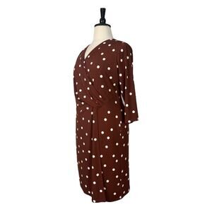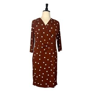 Talbots Wrap Dress V-neck 3/4 sleeves Brown White Polka Dot Women’s Plus Size 1X