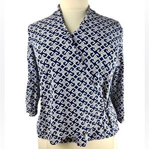 Talbots Wrap Style Geometric Print Top in Navy/White Women’s XL