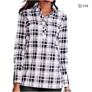 Collared Long Sleeve Plaid Popover Top. Wrinkle Resistant