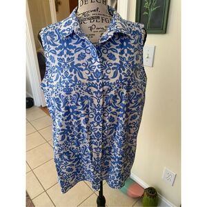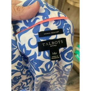 Talbots Wrinkle Resistant Sleeveless Stretch Blue Print Button Up size 14. Good condition