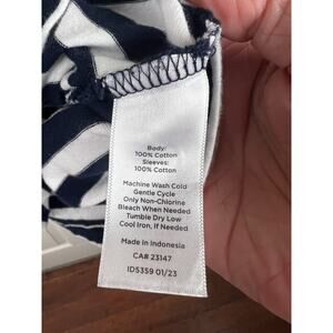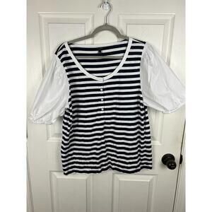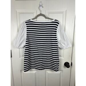 Talbots XL Blue White Stripe Cotton Short Balloon Sleeve Blouse Top Preppy
