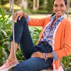 Talbots XL Classic Cotton Button Down Shirt Royal Palm Paisley Orange Blue