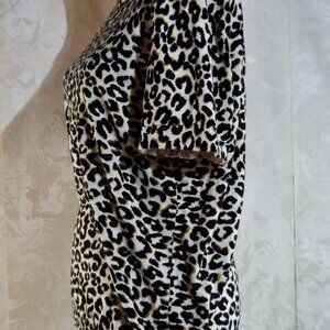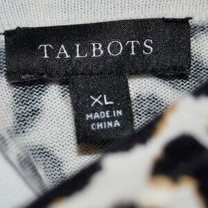 Talbots XL Leopard Print Short Sleeve Sweater Top | Bateau Neck | Cotton Blend
