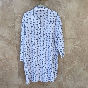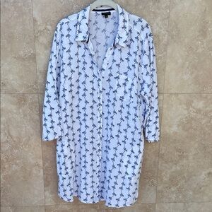 Talbots XL Palm Tree Button Down Shirt White Blue 100% Cotton Resort Top Long