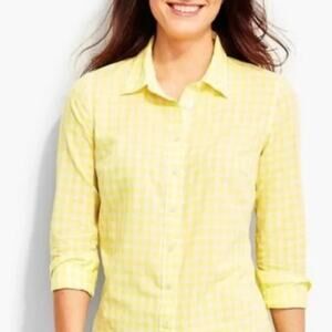 Talbots XL Petite Womens Yellow Check Gingham Button Front Shirt Long Sleeve