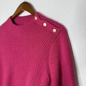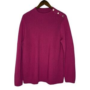 Talbots XL Pink Textured Pullover Sweater Gold Button Shoulder Waffle Knit