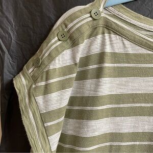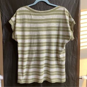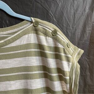 Talbots XLP Green Striped Boxy Short Sleeve Tee Button Summer Casual**READ**