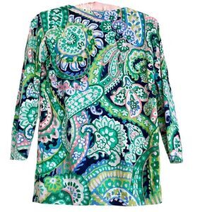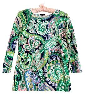 Talbots XS Paisley Cotton Knit Long Sleeve Crew Neck Sweater Pink Green Black