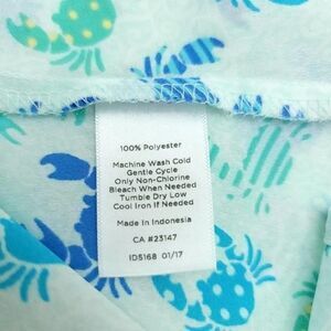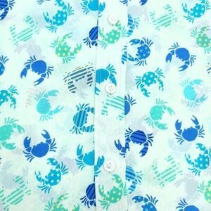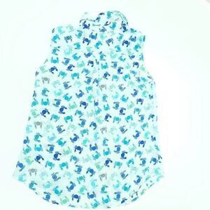 Talbots sleeveless crab print top offers a summer-ready sleeveless design. This polyester top features a charming multicolor blue and teal crab pattern with button-down closure and classic collar.