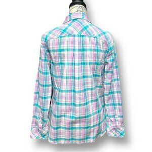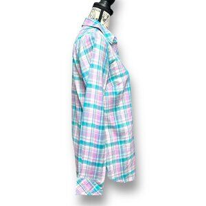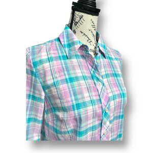 Talbots XS Pink Teal Plaid Button Up Cotton Shirt Long Sleeve Work Preppy NWT