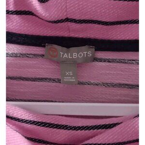 Talbots XS Women's Mock Neck Sweatshirt, Pink with Blue Stripe And Drawstring