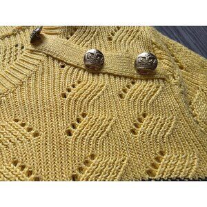 Talbots Yellow & Black Striped Knit Sweater With Shoulder Buttons Size L
