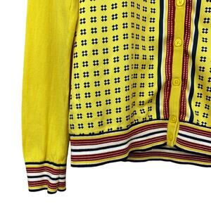 Talbots Yellow Cardigan Sweater Contrasting Fabric Knit Button Front Women’s M