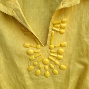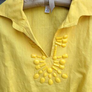Talbots Yellow Linen Blend Tunic with Beaded Neck Line size Large