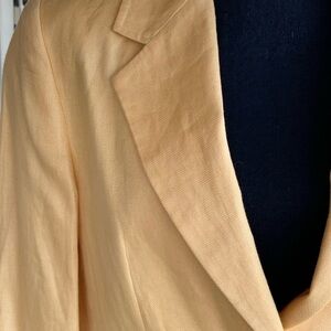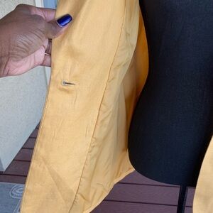 Bright yellow mustard classic linen blazer fully lined stitched pockets one button closure shoulder pads color varies due to lighting great preloved condition smoke/pet free home
